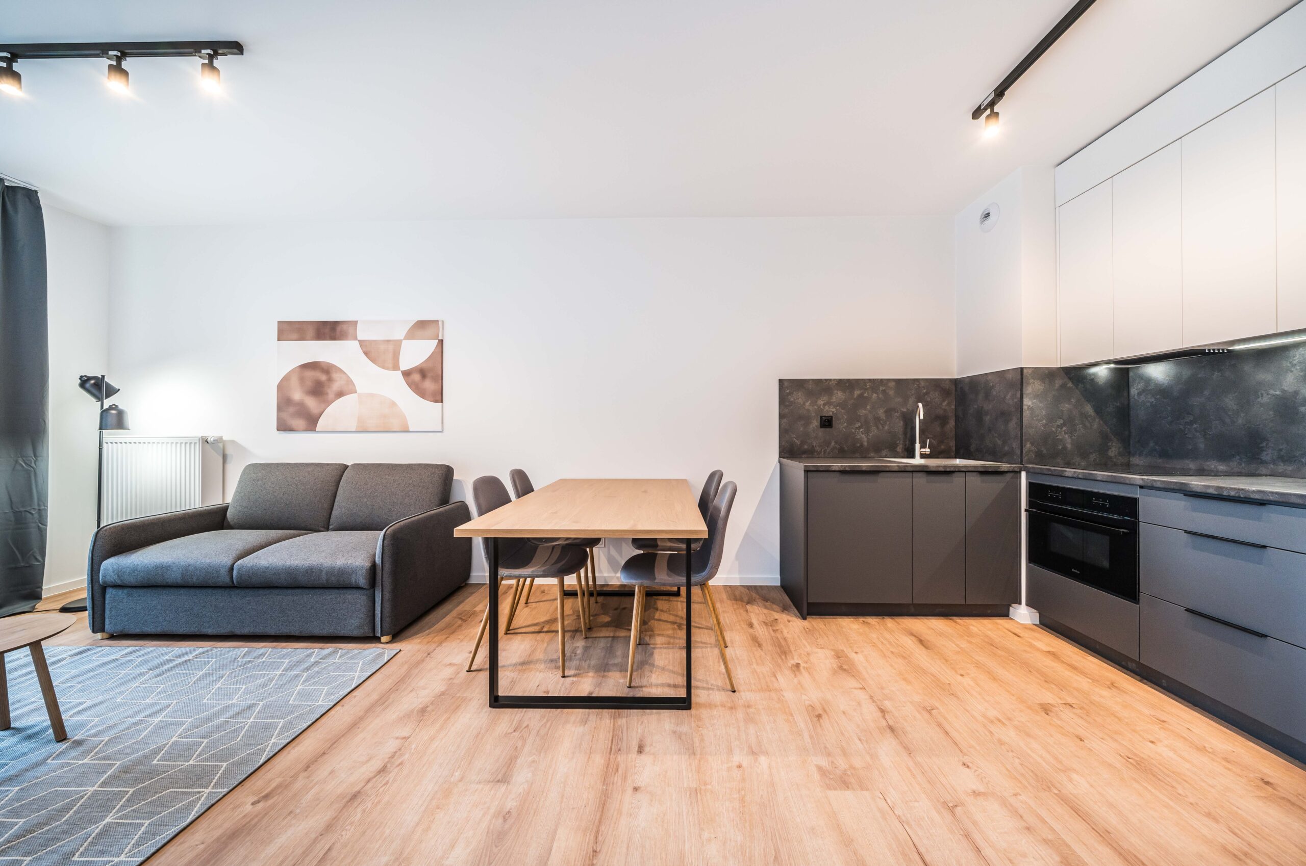 Nowo wybudowany apartament z jedną sypialnią i salonem z aneksem kuchennym na wynajem (47 m²)