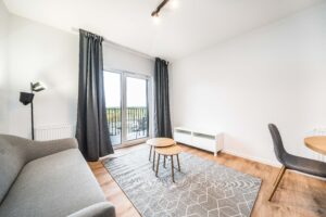 Do wynajęcia umeblowany, w pełni wyposażony apartament dwupokojowy w nowo wybudowanym kompleksie mieszkaniowym w dzielnicy Naramowice w Poznaniu. Apartament będzie dostępny do wprowadzenia się od 16 października, a przyszły najemca będzie pierwszym lokatorem.